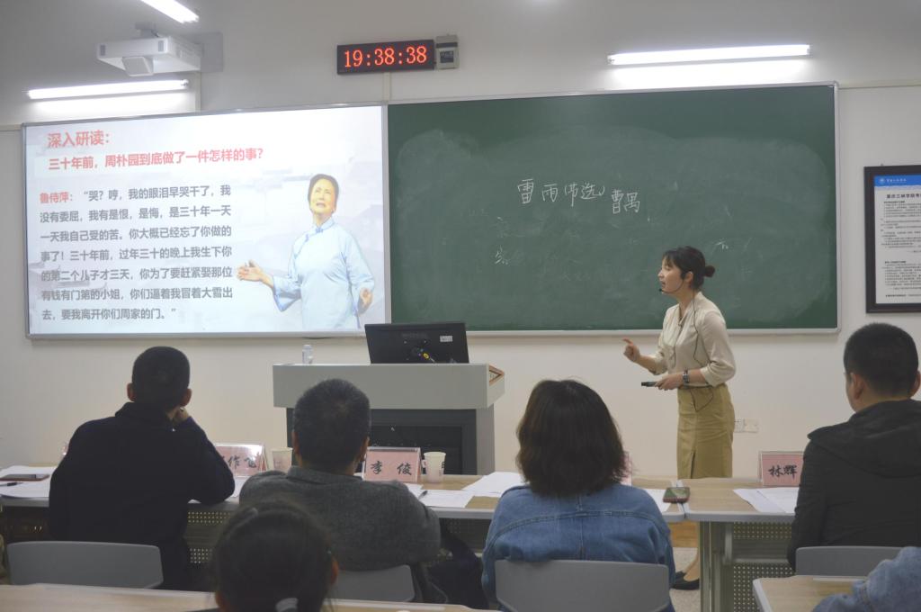 评委老师刘美围绕“如何将自己打造成为一个有魅力的语文老师”对参赛选手的表现进行了点评。刘美强调:“作为一名语文老师,应该要具有扎实的教学技能并努力塑造好自己的个人形象。”副经理向学春对本次比赛进行总结,她指出模拟授课不宜墨守成规,按照既定的教学设计进行教学,而应该学会随机应变、临场发挥。向学春强调,“粉笔字和普通话是师范生的生命线和看家本领,希望大家认真总结经验,加强交流学习,不断提高自己的专业素养”。