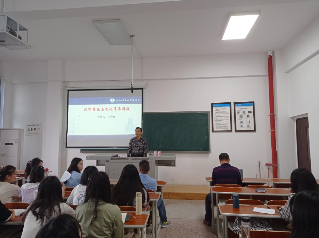 沈阳师范大学于全有教授作了《汉字简化与中华文化传承问题》的讲座,三峡研究院经理王志清教授主持,伟德国际bevictor研究生参加。于全有围绕汉字简化与中华文化传承之间的关系问题,阐述了文字与文化的关系、汉字简化的客观事实、汉字简化与文化传承的辩证观等。讲座对于进一步科学地理解和把握文字发展的基本规律与态势,加深对有关现行汉字若干问题的理解,增强全社会的汉字科学意识,树立正确的文字观以指导社会的文字运用实践等具有十分积极的意义。