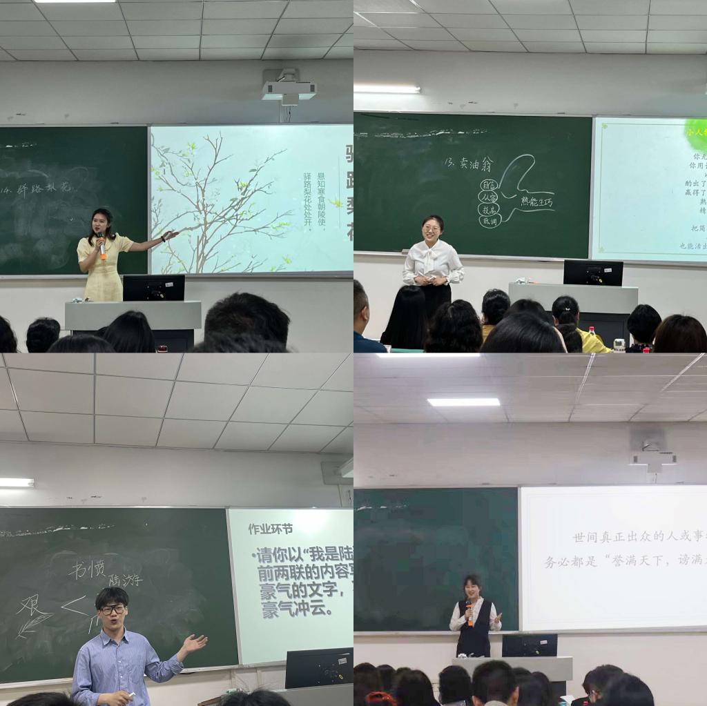 选手们按照抽签顺序依次上台完成即兴演讲和模拟授课两个环节。即兴演讲,他们声情并茂、慷慨激昂;模拟授课,他们教学设计完整,教学过程流畅,展现了较好的师范技能和专业素养。