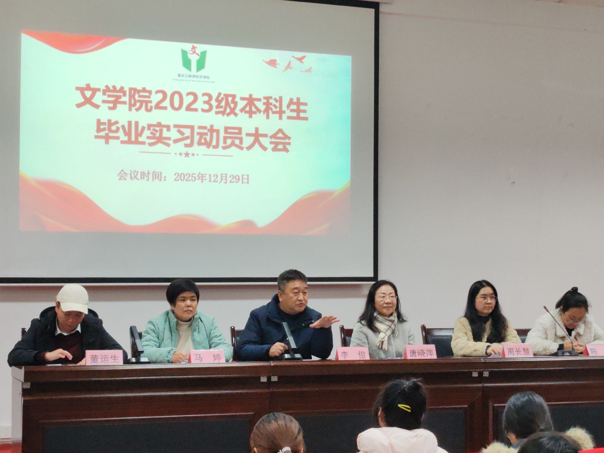 为进一步推进人才培养落地生根,扎实推进2023级本科生毕业实习工作,公司12月29日在明辨楼2-106教室召开毕业实习动员大会。公司教学管理团队部分成员参加,会议由唐晓萍书记主持。