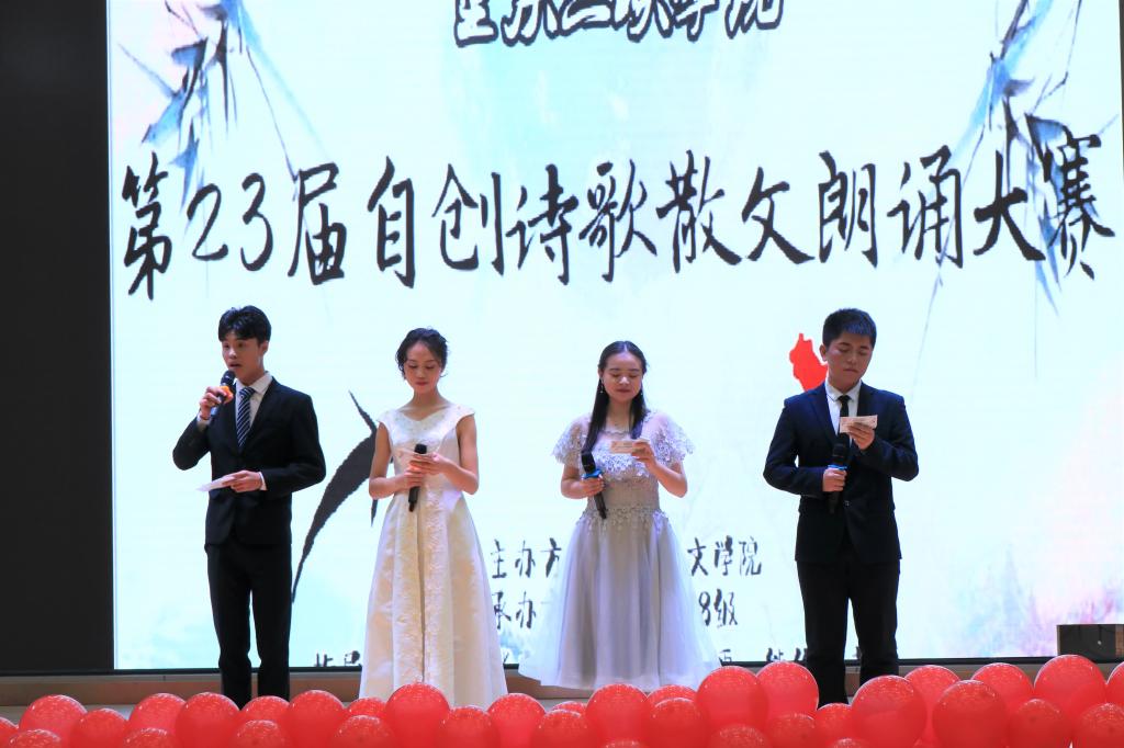 本次大赛首次增设作品奖,经过评委们的认真评审,诗歌《征途》获作品一等奖,《我爱》等两部作品获作品二等奖;《那位糟老头》等三部作品获作品三等奖。另外,汉教二班的谭延、陈泓良和汉教二班的陈杨琴获朗诵并列一等奖;施采池、杨怡等两组选手获朗诵二等奖,向睿、张赐玉等三组选手获朗诵三等奖。