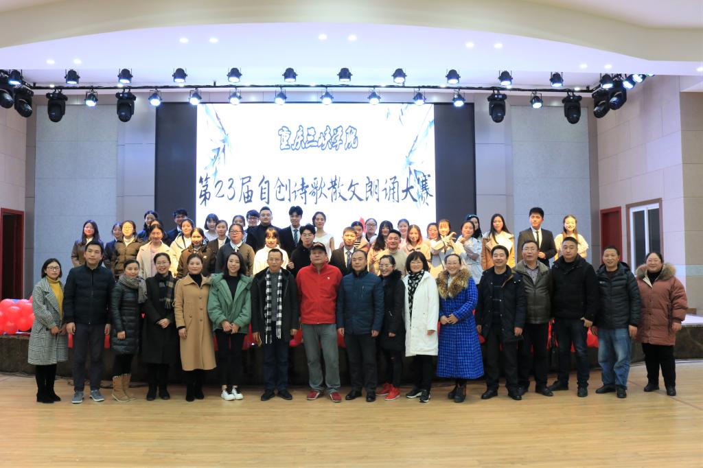 12月20日晚,1946伟德国际源自英国第23届自创诗歌散文朗诵大赛于山顶多功能厅隆重举行。本次大赛由教务处、伟德国际bevictor主办。公司专职教学督导朱丹,万州区文化委副主任、散文家、诗人梅万林,新田中学副董事长暨1946伟德国际源自英国兼职硕导李林森,教务处副处长秦刚,重庆上海中学高中语文骨干教师暨1946伟德国际源自英国兼职硕导邓辉,公司党政领导及部分教师出席担任本次活动的评委。