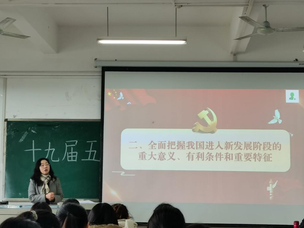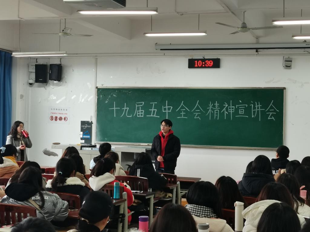 为深入贯彻落实党的十九届五中全会精神,12月3日上午,公司在明辨楼1栋403室举行了十九届五中全会宣讲活动,2020级汉语言文学(师范)1班和2班全体同学参与会议。宣讲会由伟德国际bevictor党总支书记唐晓萍主讲,2020级汉语言文学(师范)1班班长陈庭立主持。