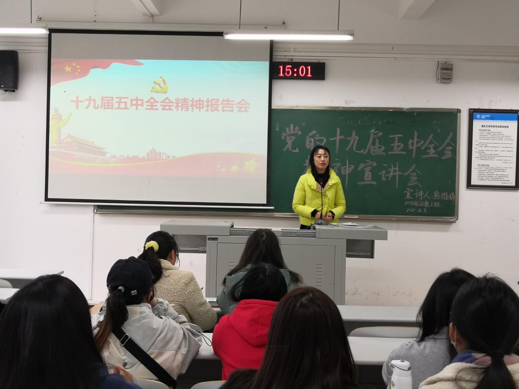 报告会上,熊维娟围绕全会的基本情况、全面把握我国进入新发展阶段的重大意义、有利条件和重要特征、全面把握新发展阶段的目标任务、全面构建新发展格局的战略构想和重要着力点、坚持党的全面领导,动员各方面力量为实现“十四五”规划和2035年远景目标而团结奋斗这五个方面开展宣讲,并且对全会精神作了系统阐述和深刻讲解,与同学们进行了深入交流。熊维娟还谈到在此次新冠肺炎疫情中,以习近平同志为核心的党中央不忘初心、牢记使命,团结带领全党全国各族人民砥砺前行、开拓创新,推进了党和国家各项事业的发展,为决胜全面建成小康社会取得了决定性成就。