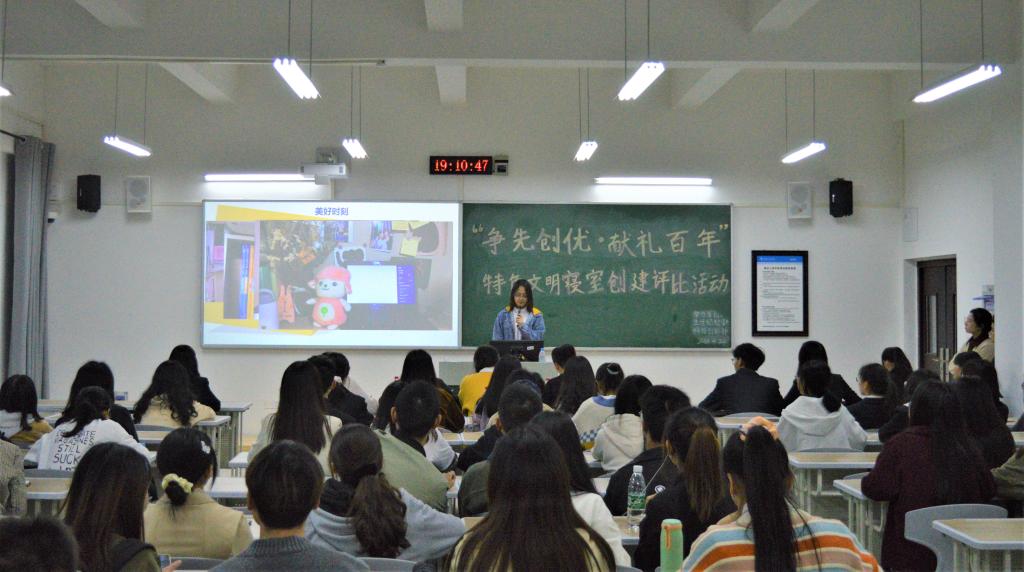 为充分发挥员工宿舍集体在员工成长中的凝聚作用,形成和谐的校园氛围,4月24日晚,公司于博学楼一栋105室举办“争先创优•献礼百年”特色文明寝室创建评比活动。