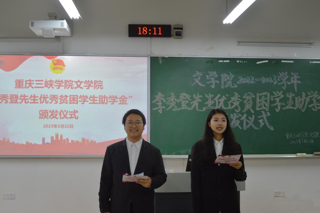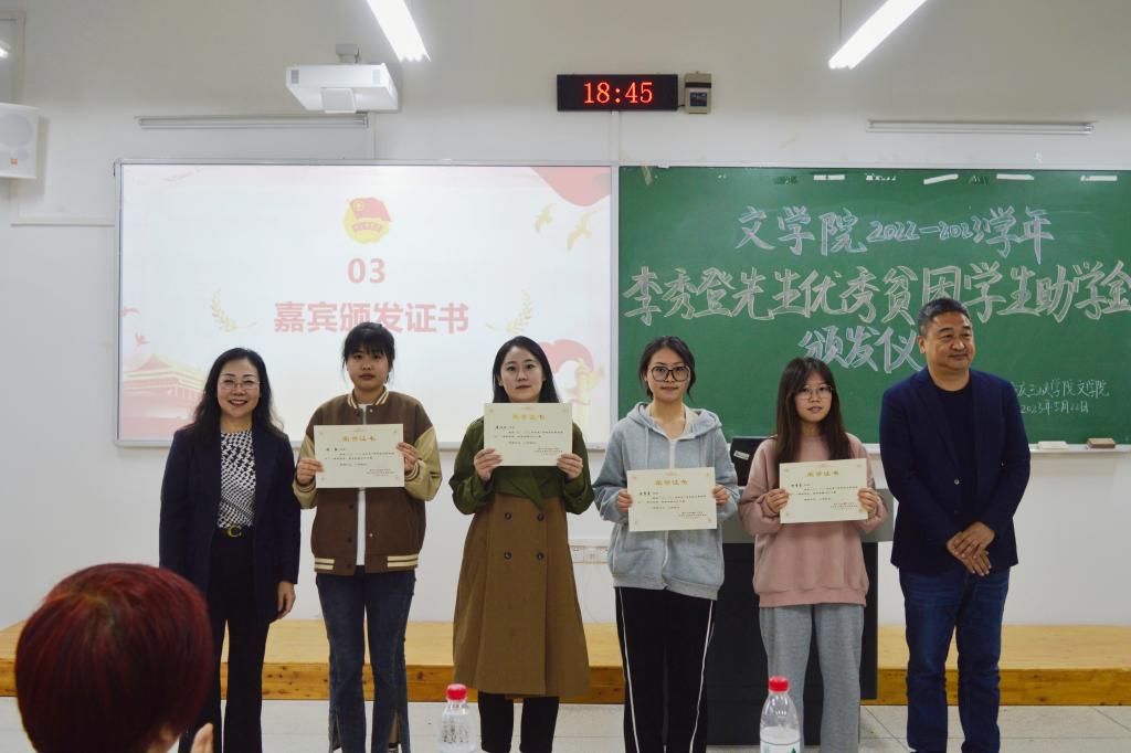 活动伊始,唐晓萍书记向我们讲述了李秀登老人平凡又伟大的一生,让同学们更了解李秀登先生创立优秀贫困员工助学金的初衷。马婷副书记宣读受助名单,随后为她们颁奖。获奖代表左玉婷和粟琳媛分别发言,对李秀登先生表示由衷的感谢,并鼓励大家要继续努力学习,常怀感恩之心,不辜负李秀登先生及老师的期待。李俊经理总结发言,对李秀登先生表达了崇高的敬意,并对获奖的同学表示祝贺,希望同学们要继续努力学习专业知识,培养大爱之心,不做精致的利己主义者,要做一个高尚的人、一个纯粹的人、一个对党和国家有用的人。