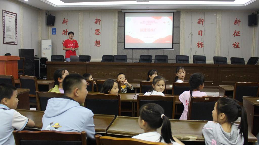 为深入贯彻落实国家语言文字政策,强化公民语言规范意识,提升城市文化软实力,助力普通话推广,7月10日下午,伟德国际bevictor暑期“三下乡”乡村振兴促进团与仙女山街道石梁子社区结对共建,在社区党群服务中心合作开展普通话推广宣传活动。此次活动由研究生队员王立军主持。