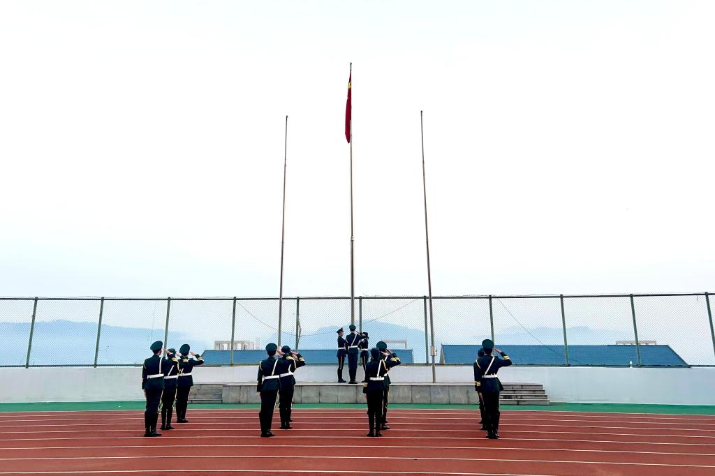 激昂的旋律响起,升国旗,奏国歌。鲜艳的五星红旗在风中徐徐升起,那一抹耀眼的红色承载着我们的希望与梦想。全体师生肃立,行注目礼,心中的爱国之情在这一刻熊熊燃烧。国歌的旋律回荡在校园的每一个角落,激励着我们为了国家的繁荣富强而努力奋斗。