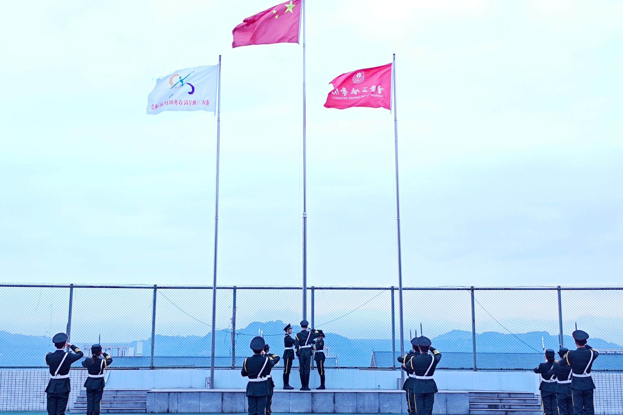 4月21日清晨,伟德国际bevictor在田径运动场举行升旗仪式。7时整,晨光初露,升旗仪式正式拉开帷幕。