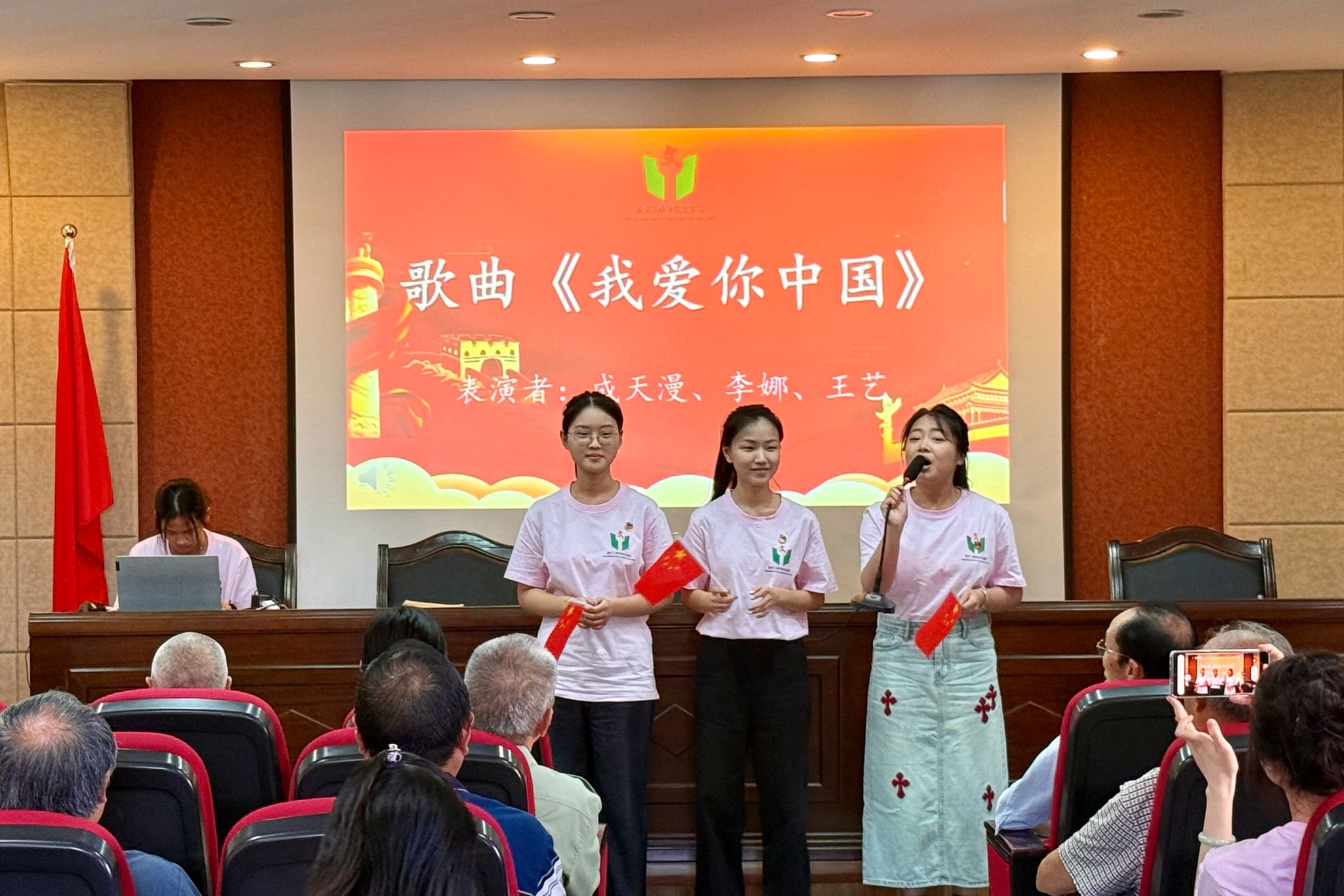 实践团成员为社区居民带来了歌曲《我和我的祖国》、舞蹈《字正腔圆》、朗诵《清贫》、大合唱《没有共产党就没有新中国》等节目,用悠扬的歌声表达对祖国的热爱,用灵动的舞步演绎中华服饰和舞蹈之美,以铿锵的语调再现革命先辈的崇高精神。最后社区工作者和实践团成员分享了“我眼中的中国”,让社区群众感受到了新时代社区工作者扎根基层,服务群众的初心和使命,也感受到青年学子主动投身志愿服务,用实践践行责任和担当的决心。