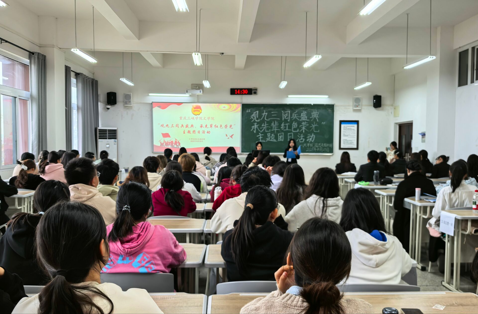为深切缅怀革命先辈的丰功伟绩,深刻领悟抗日战争壮阔历史的非凡意义与抗战胜利的伟大荣光,伟德国际bevictor于10月23日在博学楼1栋103室成功举办了“观九三阅兵盛典,承先辈红色荣光”主题团日活动。伟德国际bevictor员工团体联合会主席陈沛洁、员工会主席团成员汤雨欣、老员工语言艺术爱好者协会副会长陈秋瑾、组织部部长张金羽出席活动,担任嘉宾评委。