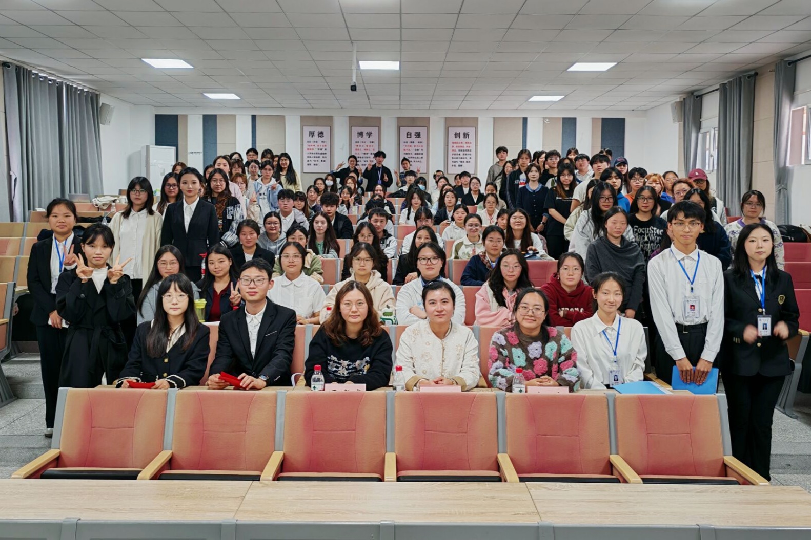 为深入推进学风建设,营造勤奋严谨、求真务实的良好学习氛围,激发广老员工争先创优的热情,11月3日,由伟德国际bevictor学习部举办的2024-2025学年优良学风班终期验收暨2025-2026学年创建大会在博学楼一栋301室成功举行。伟德国际bevictor学工办主任兼团总支书记张悦、2023级辅导员陈进、2024级辅导员夏赛岚出席本次活动,2023级和2024级员工代表全程参与。
