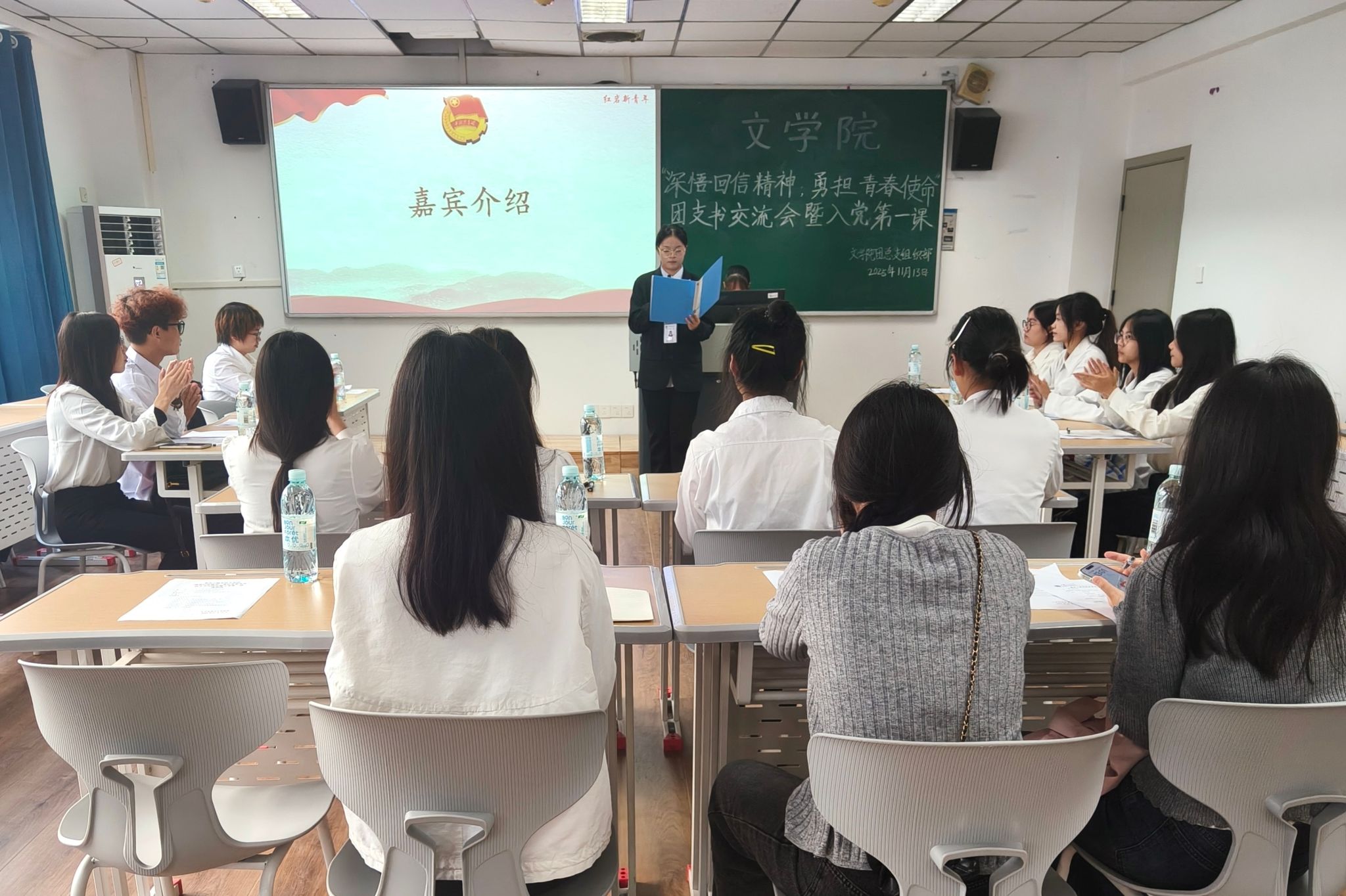 为加强基层团组织建设,提升团支书的理论素养与工作能力,引导优秀团员青年积极向党组织靠拢,伟德国际bevictor于11月13日在沙龙校区综合教学楼309室举办了“深悟回信精神,勇担青春使命”团支书交流会暨入党第一课。伟德国际bevictor党总支员工党支部党务工作者王莎、伟德国际bevictor团总支组织部全体部长作为嘉宾出席本次会议,2024级、2025级全体团支书参加会议。