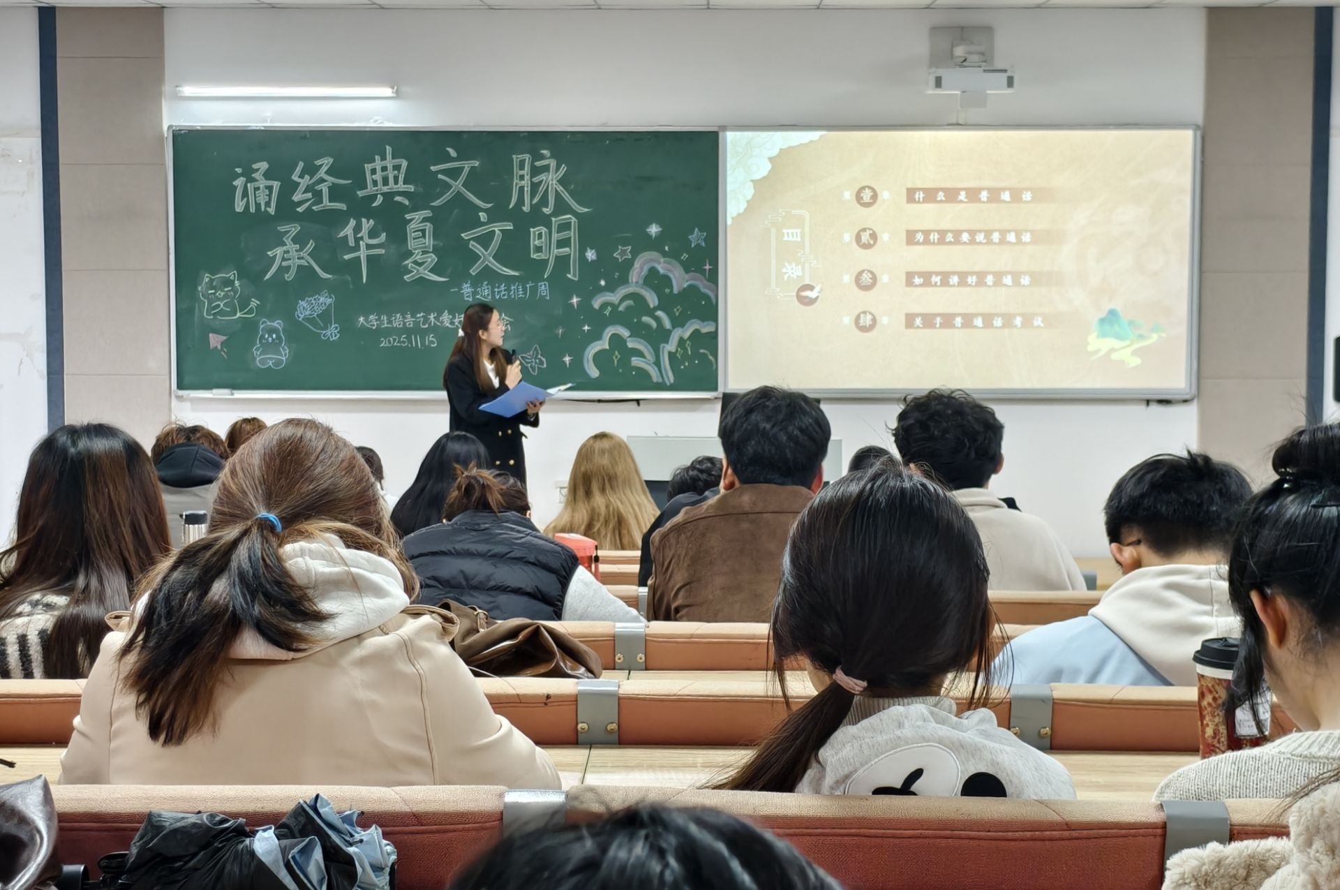 为了提升同学们规范使用普通话的意识与能力、营造校园普通话使用浓厚氛围,促进跨地域同学间的沟通与融合,11月15日,伟德国际bevictor老员工语言艺术爱好者协会在博学楼1栋301室成功举办“诵经典文脉,承华夏文明”普通话推广活动,全校员工踊跃参与。