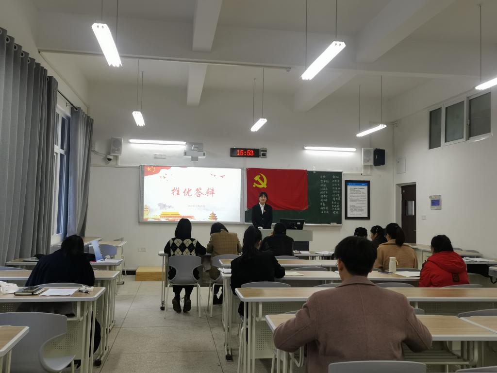 会上,发展对象依次进行自我评述,内容包括个人基本情况、个人优缺点、入党动机等。随后,答辩对象就理想信念、党的理论知识和时政热点等方面接受提问,公开答辩。郑尚军同志以坚定的决心与自信谈到自己为追求中国共产党的信仰而入党,绝非“功利”入党,并坚持要有“功在当代,利在千秋”的无私奉献精神。杨礼仪同志谈到,虽然她不会制造一船、一炮,但是作为一个汉教的学子,她会先当好一名人民教师,为祖国培养人才,积极投身到党领导下的社会主义建设的伟大实践中,以一名党员的标准严格要求自己,用实际行动来证明自己的初心。