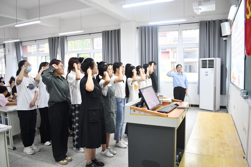 王陈超同志带领24名预备党员面对党旗,进行了入党宣誓。预备党员代表曹梦芸同志表示要终生铭记并践行入党誓词,要从认真遵守党的纪律和各项规章制度等五个方面来体现先锋模范作用。张悦同志对新发展的同志提出了两点要求:第一,在今后要更加严格要求自己,学习与生活都要做好带头作用,要时刻牢记入党誓词,铭记为人民服务的宗旨,做到不忘初心。第二,希望大家继续加强理论学习,提高自己的党性修养,向优秀党员看齐,坚持终身学习。