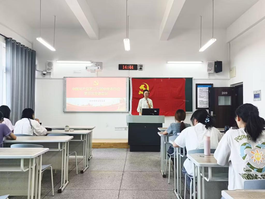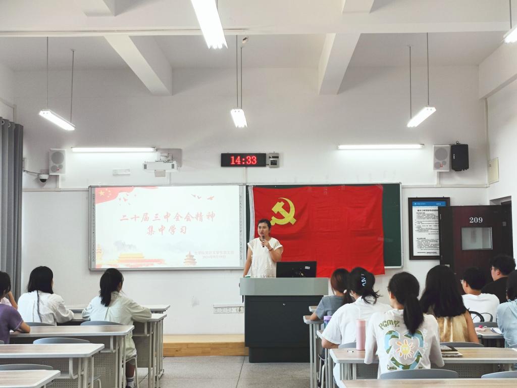 为深入学习贯彻党的二十届三中全会精神,深刻领会全面深化改革精神实质,领悟以中国式现代化全面推进强国建设、民族复兴伟业,进一步提高党员同志的思想认识,伟德国际bevictor党总支员工党支部于2024年9月19日分别在桂花苑5舍党员活动室和博学楼1栋209开展党的二十届三中全会精神集中学习,伟德国际bevictor党总支员工第一党支部书记张悦、第二党支部书记陈进以及党员同志参加了此次学习。
