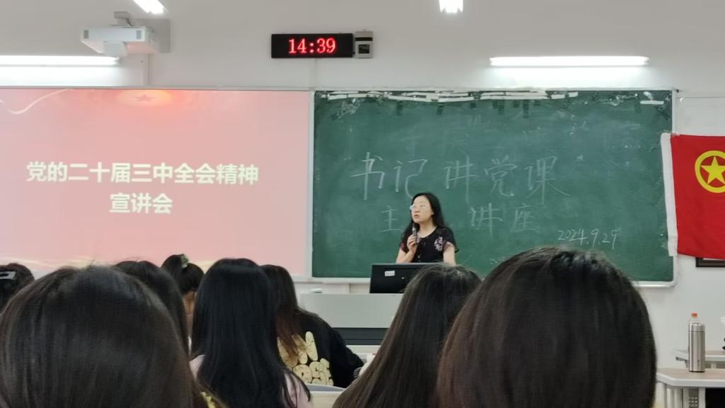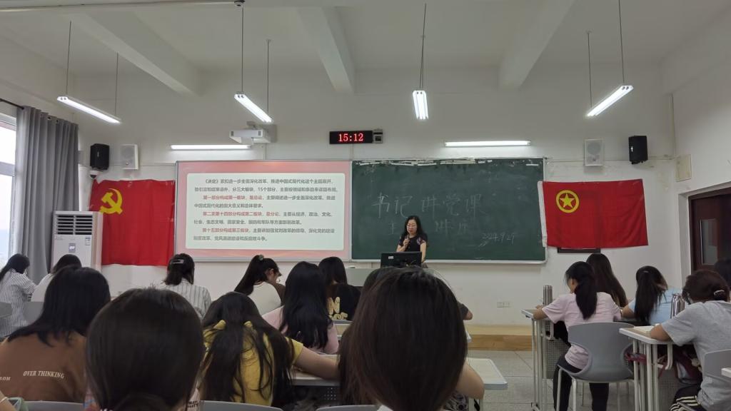 9月29日下午,公司于博学楼1栋103教室举办了“书记讲党课”暨领导干部联系班级活动,党课由公司党总支书记唐晓萍主讲,2023级汉语言文学(师范)1班全体员工参与。