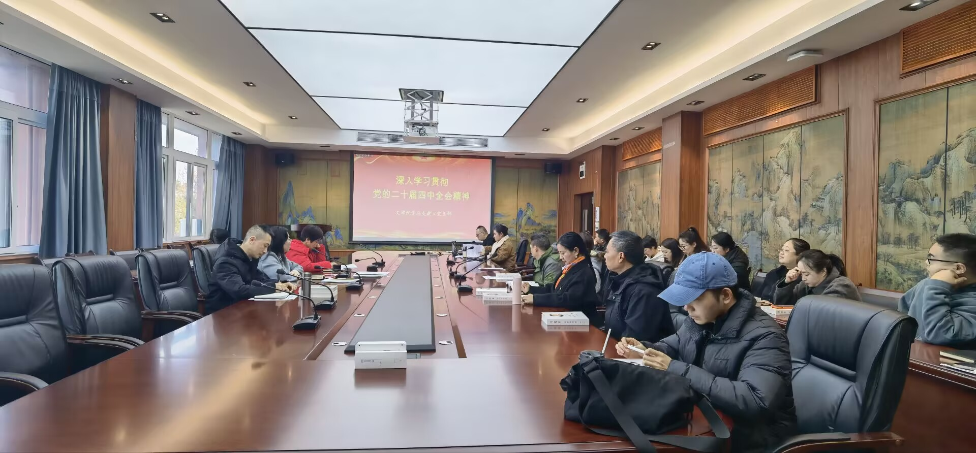 11月20日下午,伟德国际bevictor党总支教工党支部在博学楼3栋404召开党员大会,集中学习党的二十届四中全会精神,全体教工党员参加学习。
