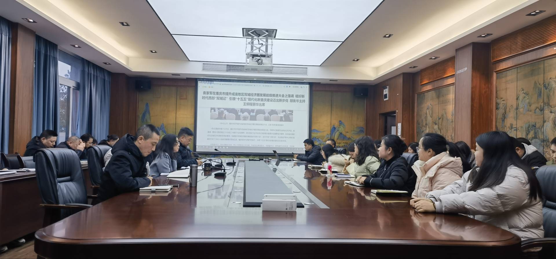 会上,唐晓萍带领全体党员全面领会会议核心要义,重点解读了构建双城经济圈发展能级“四梁八柱”、迭代升级 “十项行动”等关键内容,并详细梳理出其中与文科院系紧密相关的巴蜀文化旅游走廊建设、优质资源均衡共享、区域协同发展等部署要求,进一步明确了双城经济圈建设对地方高校在文化传承、人才培养、社会服务等方面的实践方向。